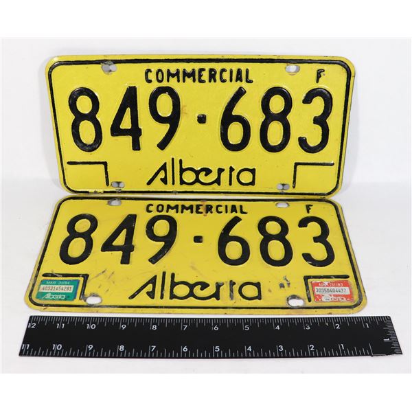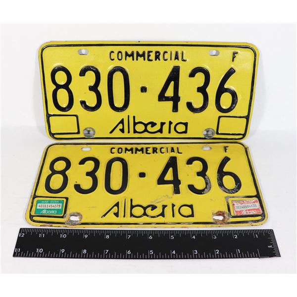 PAIR OF YELLOW COMMERCIAL ALBERTA LICENSE