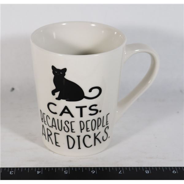 NEW CATS MUG. "CATS. BECAUSE PEOPLE ARE DICKS" ***ITEM(S) LOCATED IN LETHBRIDGE ALBERTA. TRANSPORT TO EDMONTON FEE STRUCTURE IS POSTED IN...
