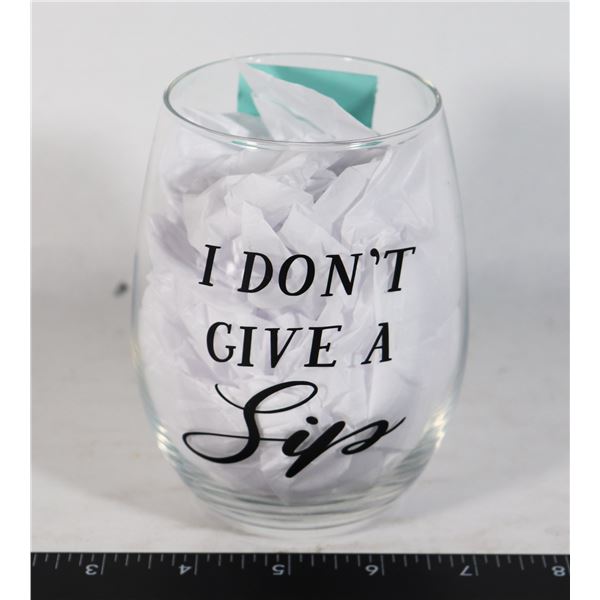 NEW WINE GLASS. "I DON'T GIVE A SIP" ***ITEM(S) LOCATED IN LETHBRIDGE ALBERTA. TRANSPORT TO EDMONTON FEE STRUCTURE IS POSTED IN THE A...