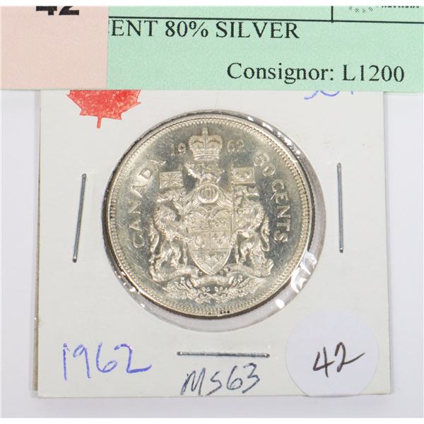 42 - 1962 50 CENT 80% SILVERKastner Auctions