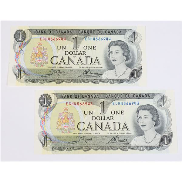 TWO 1973 $1.00 BILLS PREFIX ECH SEQUENTIAL