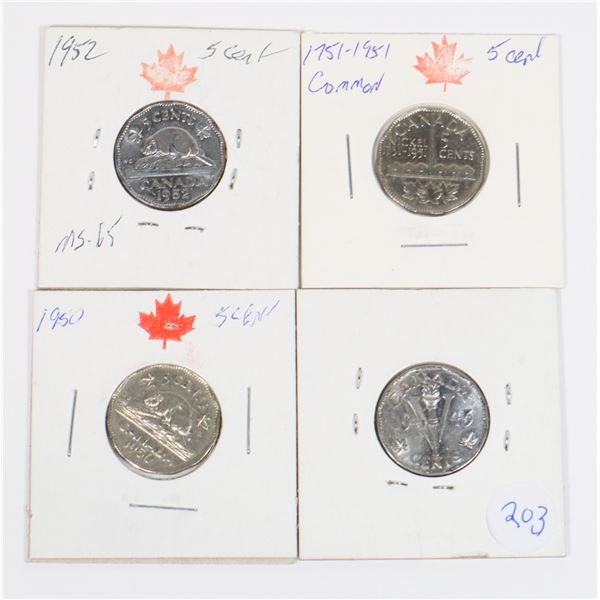 4 KING GEORGE VI NICKELS 1940, 1950, 1951 & 1952