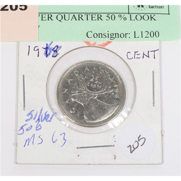 1968 SILVER QUARTER 50 % LOOK CLOSELY ***ITEM(S) LOCATED IN LETHBRIDGE ALBERTA