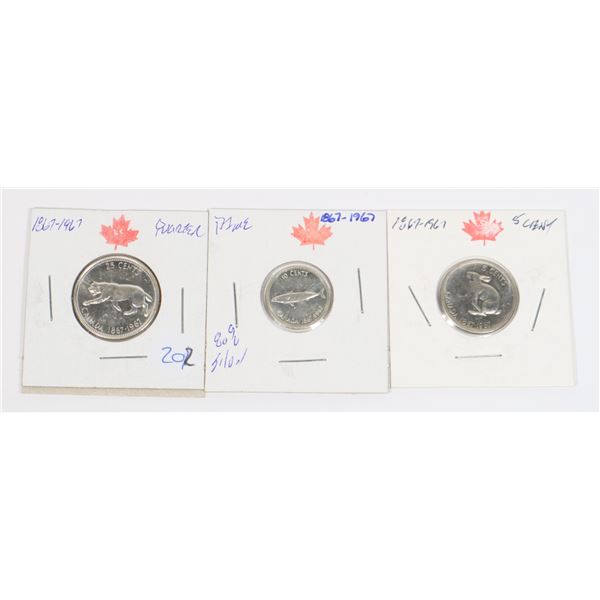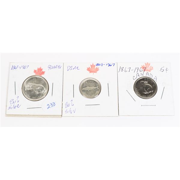 1867-1967 QUARTER< DIME & NICKLE FROM ESTATE