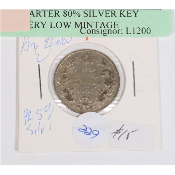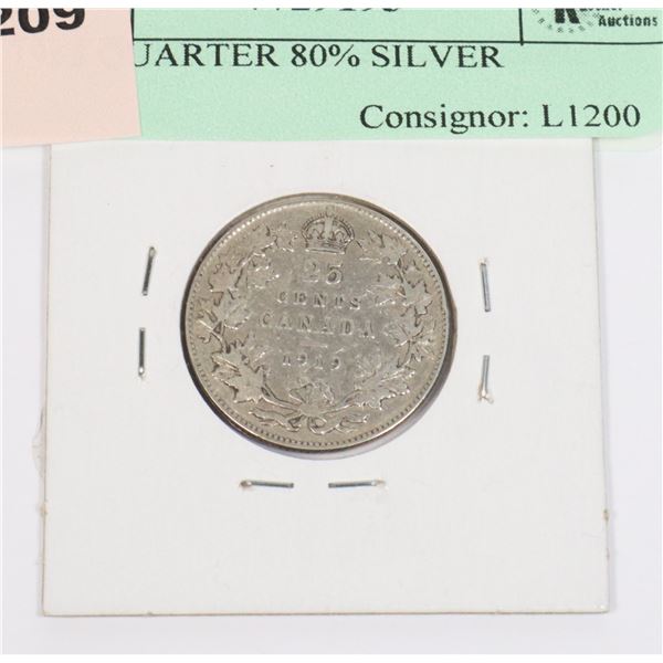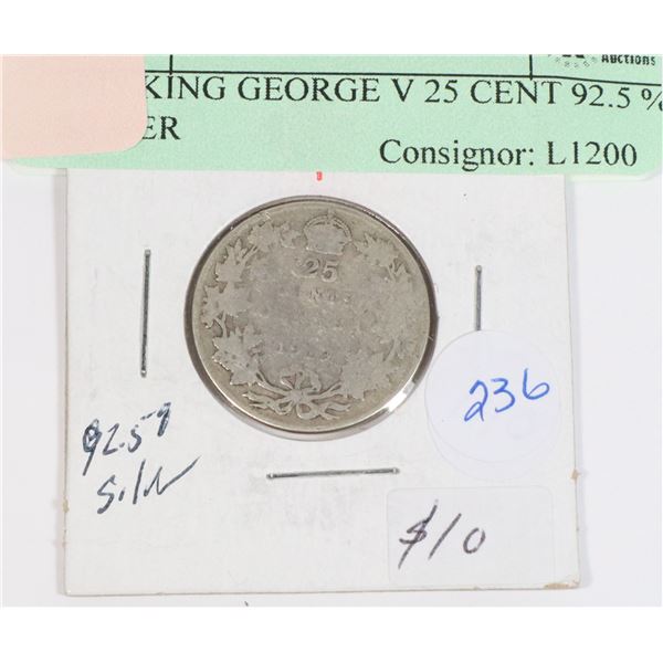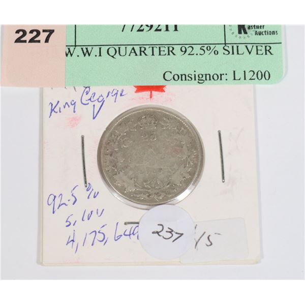 1919 KING GEORGE V 25 CENT 92.5 % SILVER