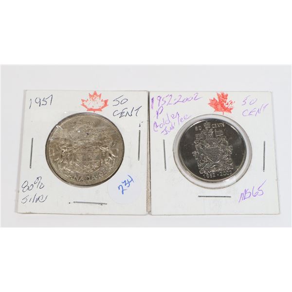 1957 SILVER 50 CENT 80% & 1952 - 2002P ASCENSION