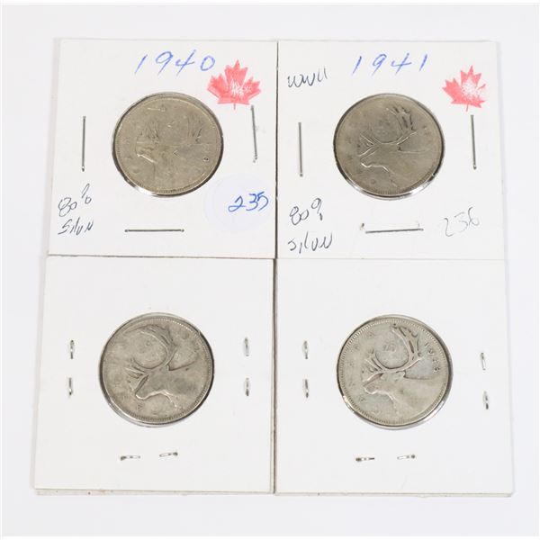 1940, 1941, 1942 & 1943 W.W.II QUARTERS 80%