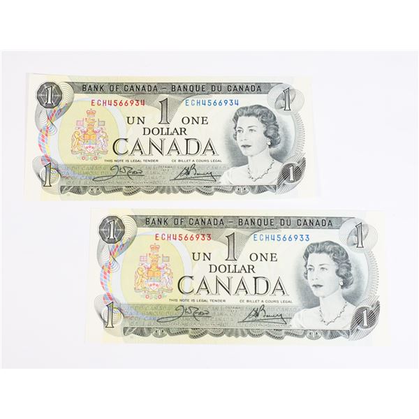 2 SEQUENTIAL 1974 ONE DOLLAR PREFIX ECH FROM