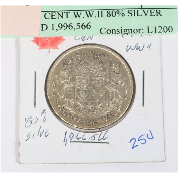 1940 50 CENT W.W.II 80% SILVER MINTED 1,996,566