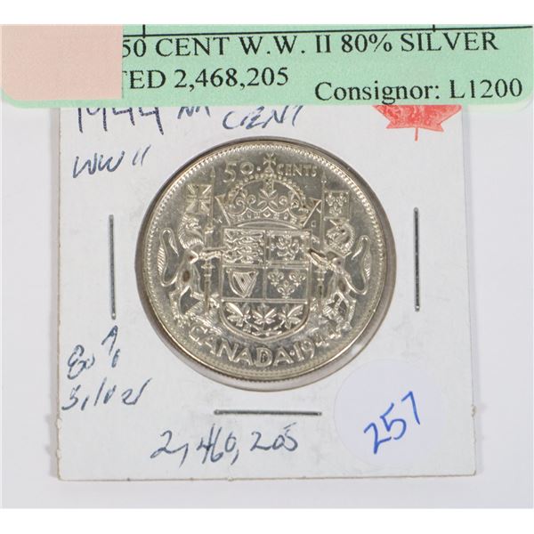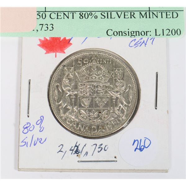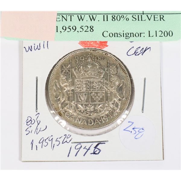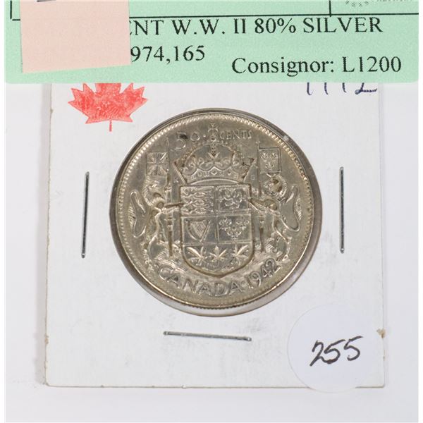 1942 50 CENT W.W. II 80% SILVER MINTED1,974,165