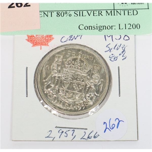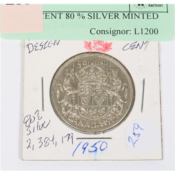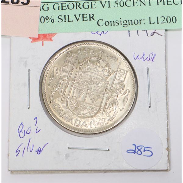 1942 KING GEORGE VI 50CENT PIECE W.W.II 80% SILVER