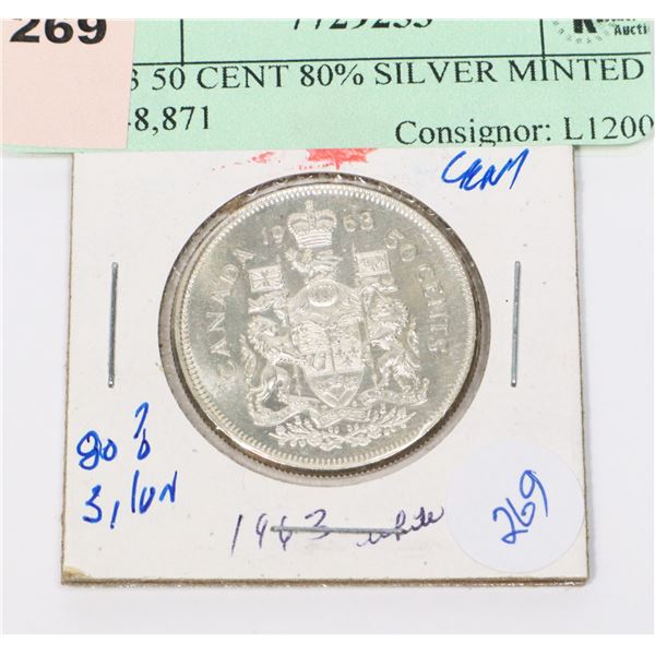 1963 50 CENT 80% SILVER MINTED 8,348,871