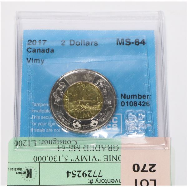 2017 TOONIE "VIMMY" 5,130,000 MINTED GRADED MS-64 ***ITEM(S) LOCATED IN LETHBRIDGE ALBERTA