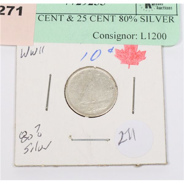 1943 10 CENT 80% SILVER W.W.II ***ITEM(S) LOCATED IN LETHBRIDGE ALBERTA