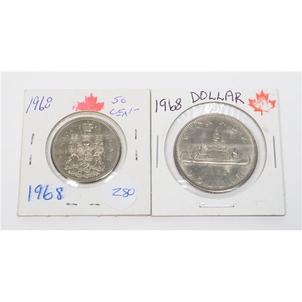 1968 DOLLAR & 50 CENT PIECE NICE EXAMPLES
