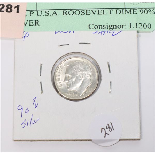 1963 P U.S.A. ROOSEVELT DIME 90% SILVER