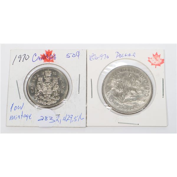 1870-1970 MANITOBA CENTENNIAL DOLLAR & 50 CENT