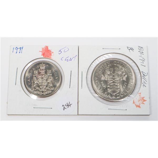 1871-1971 B.C CENTENNIAL DOLLAR & 50 CENT