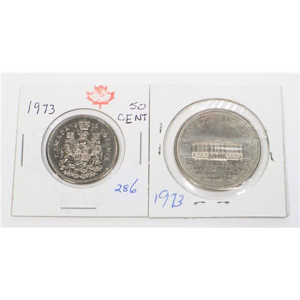 1873 - 1973 P.E.I CENTENNIAL DOLLAR & 50 CENT