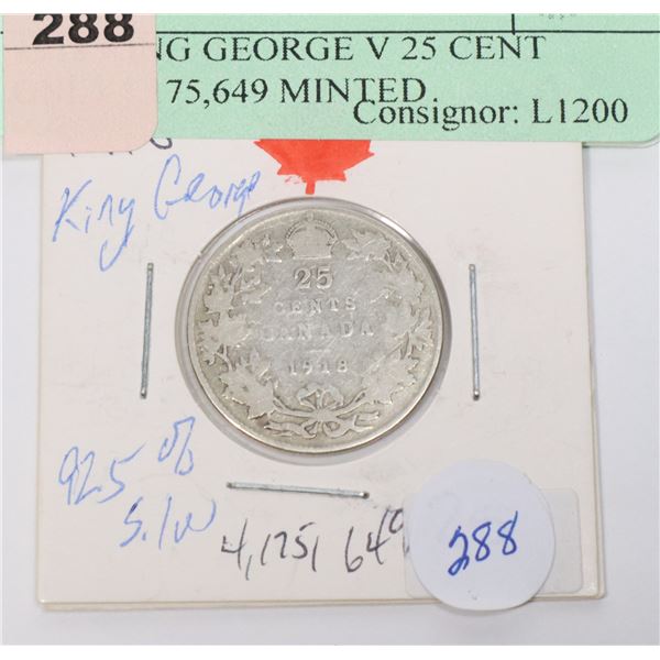 1918 KING GEORGE V 25 CENT ONLY4,175,649 MINTED