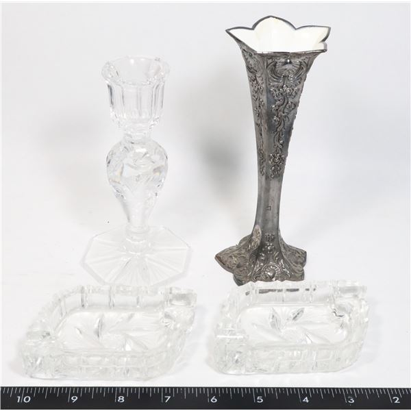 CRYSTAL DISHES, CANDLE HOLDER AND VASE3255 - CRYSTAL DISHES, CANDLE HOLDER AND VASE