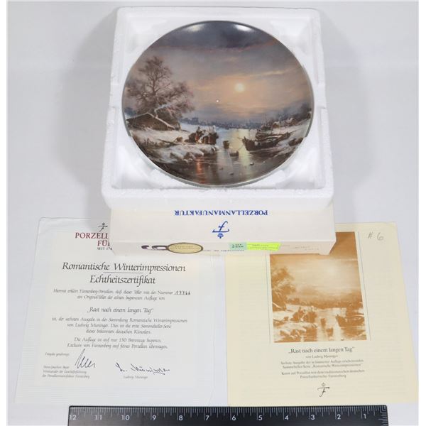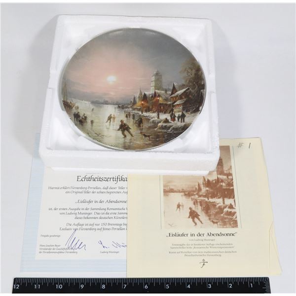 ABENDSONNE (ICE SKATERS IN THE SUN) COLLECTORS PLATE WITH CERTIFICATE OF AUTHENTICITY AND PAPERWORK. MADE IN GERMANY. HAS HANGING HOOK ON BACK ***