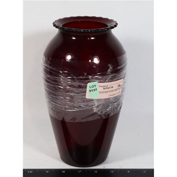 DECORATIVE RED VASE AROUND 9" TALL ***ITEM(S) LOCATED IN LETHBRIDGE ALBERTA. WORLDWIDE SHIPPING AVAILABLE. TRANSPORT TO OUR EDMONTON OFFICE AV...