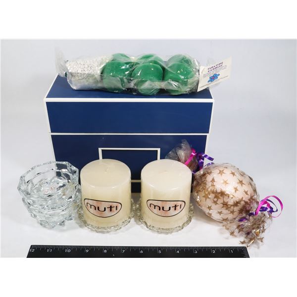 BOX OF NEW CANDLES SOLD WITH CANDLE HOLDERS ***ITEM(S) LOCATED IN LETHBRIDGE ALBERTA. WORLDWIDE SHIPPING AVAILABLE. TRANSPORT TO OUR EDMONTON OFFICE