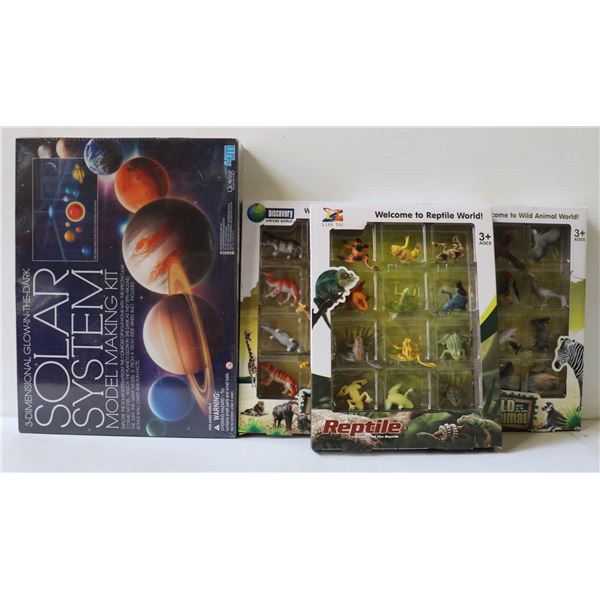 SOLAR SYSTEM MODEL MAKING KIT GLOW IN THE DARK W/DISCOVERY NATURE WORLD 3 SETS OF WILD ANIMALS 12 PER PACK