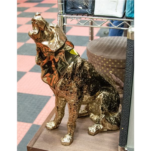 GOLD WOLF STATUE 17.5 INCHES TALL