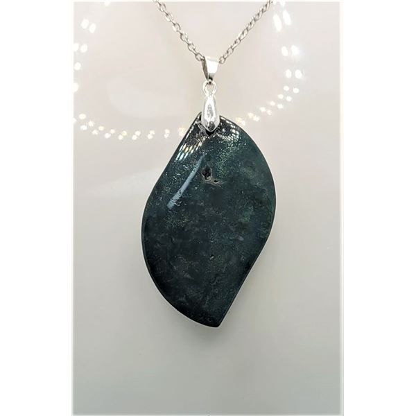 9) LEAF SHAPED DEEP GREEN INDIAN AGATE PENDANT