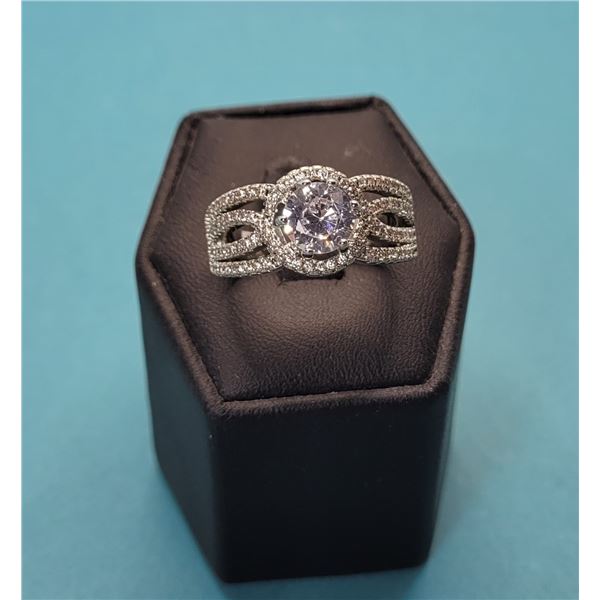 8) CLEAR CZ STATEMENT RING SET IN .925 STAMPED SI
