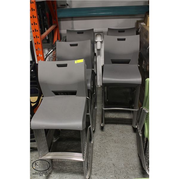 36 GREY STACKING POLY CHAIRS W/ CHROME FRAME