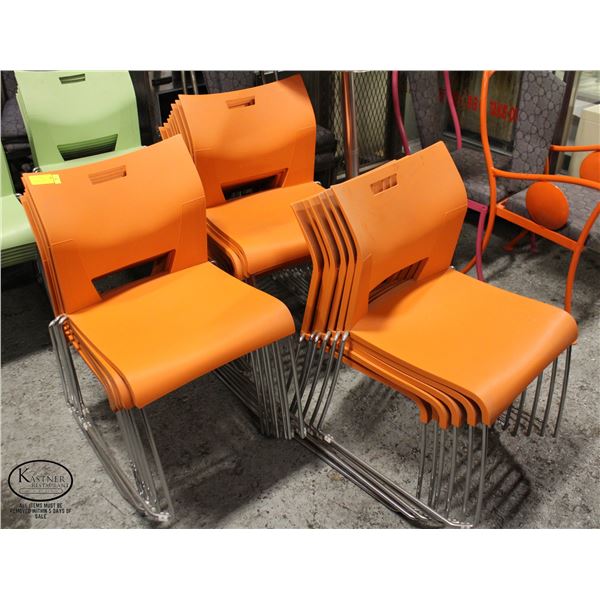 22 ORANGE STACKING POLY CHAIRS W/ CHROME FRAME