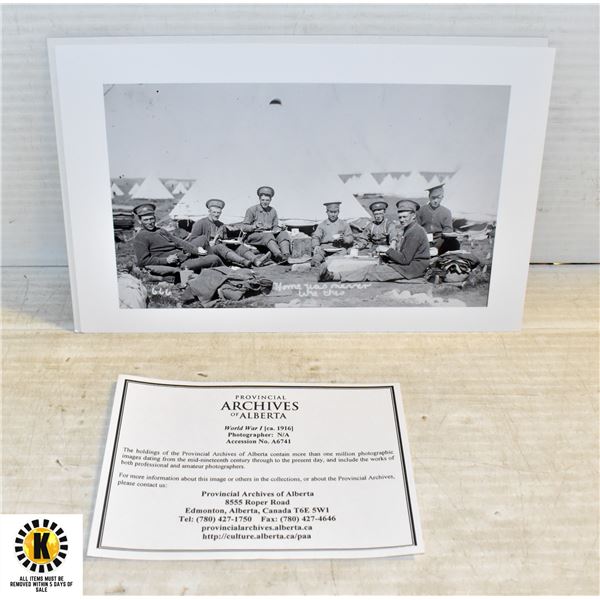 ALBERTA WORLD WAR I 1916 PHOTOGRAPH 5 1/2" X 9" APPROX.
