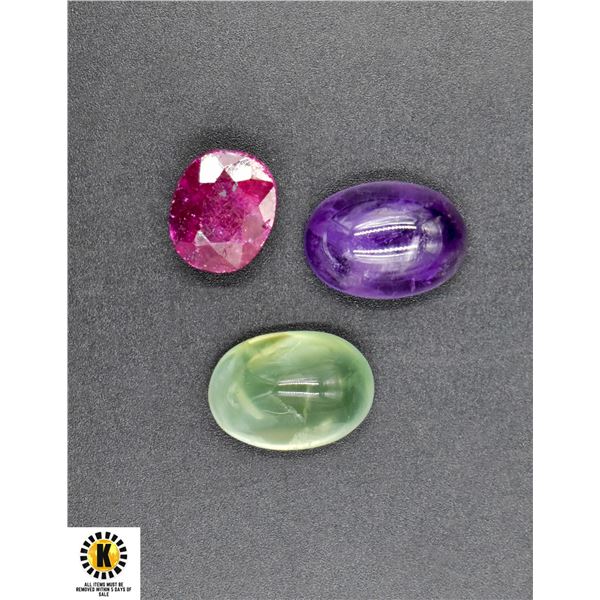 UNHEATED PRENITE 12.9X18,UNHEATED AMETHYST 12.7X17.8MM/RUBY 11X13.4MM COLOUR ENHANCE