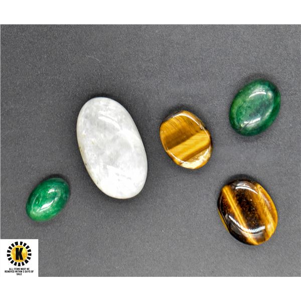 #259-NATURAL MOONSTONE, TIGER EYE ,EMERALD 81.25CT