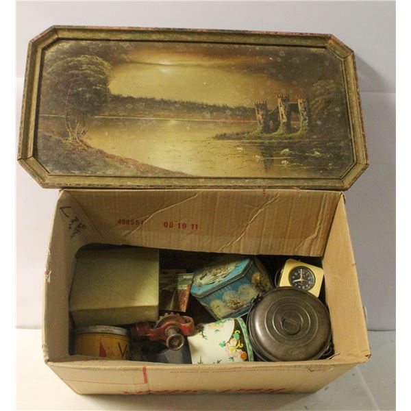 BOX OF ASSORTED ANTIQUE LAMPS & PARTS