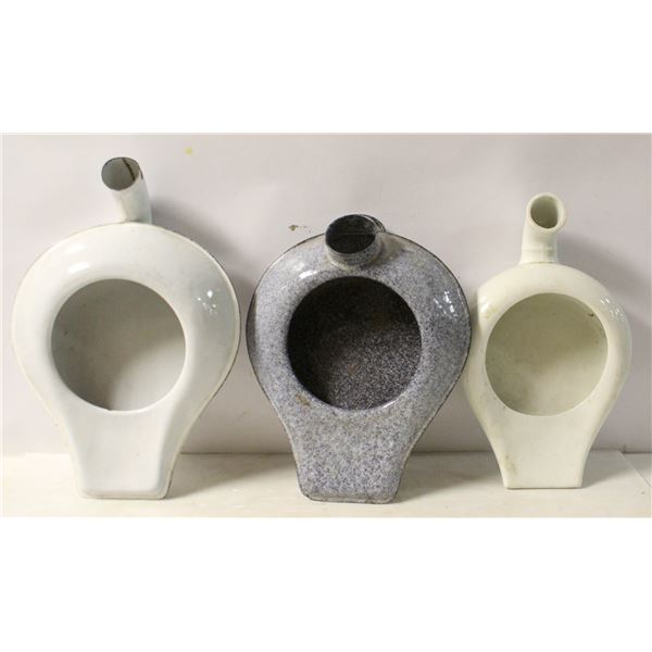 SET OF 3 PORCELAIN ENAMEL CHAMBER POTS