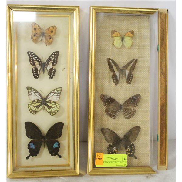 PAIR DRY MOUNT BUTTERFLY SETS *FRAMES NEED TLC*