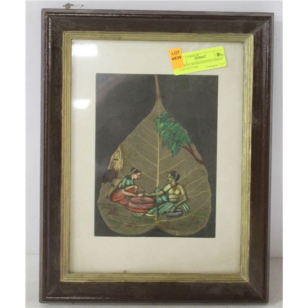 ANTIQUE HAND PAINTED INDIAN LEAF PICTURE