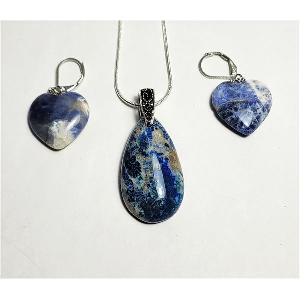 & EARRINGS ON LEVERBACK WIRES AND PENDANT ON 20" CHAIN. JEWELLERY