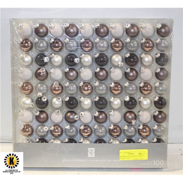 CHRISTMAS GLASS BALLS- LOT OF 100 ASST.- NEW