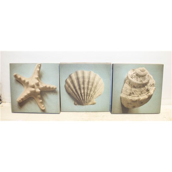 LOT OF 3 SEASHELL PICTURES SIZE 11.5" X 11.5"