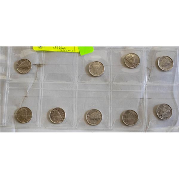 9 CANADIAN DIMES, 1939 TO 1943