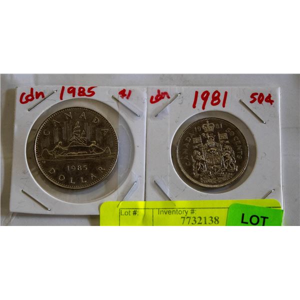 1985 CANADIAN DOLLAR & 1981 HALF DOLLAR COINS