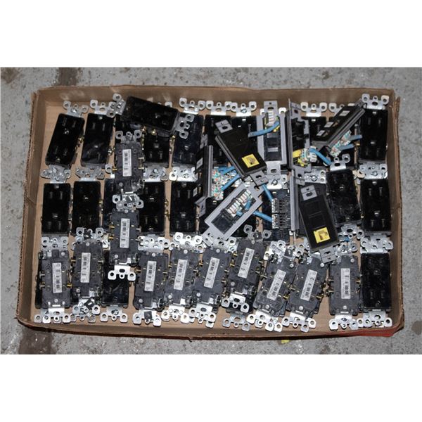FLAT OF USED BLACK DECORA RECEPTACLES AND DATA