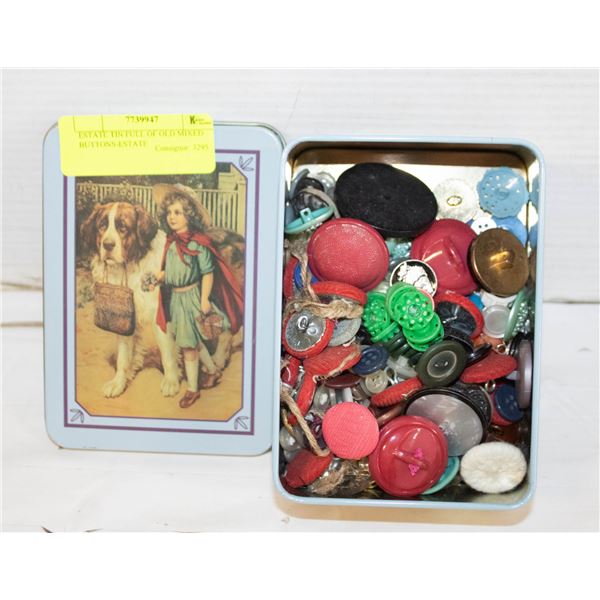 ESTATE TIN FULL OF OLD MIXED BUTTONS-ESTATE