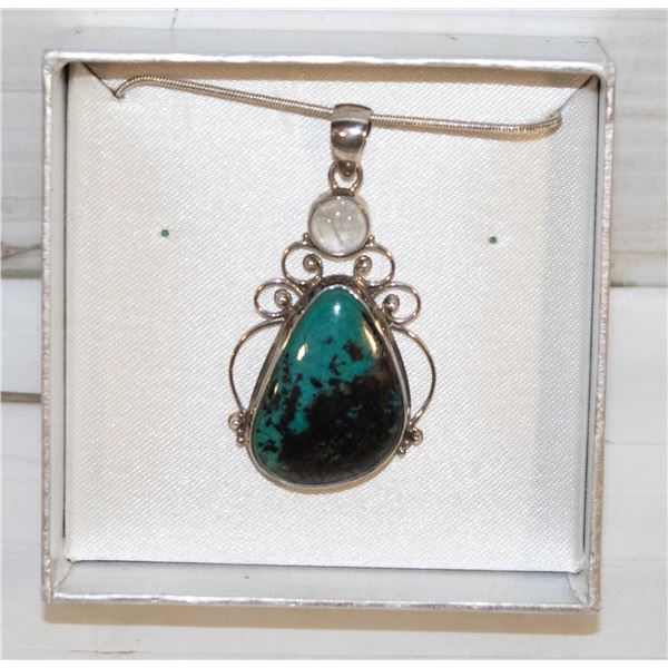 CHRYSOCOLLA PENDANT NECKLACE-"925"-13.78 GRAMS
