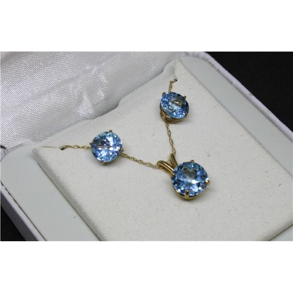 10K GOLD APROX 3CT TCW BLUE TOPAZ EARRING SET